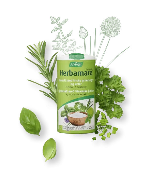 Hvis du sætter pris på mad med masser af smag og smæk på smagsoplevelsen, kan du med stor fordel bruge Herbamare Original Urtesalt både til varme og kolde retter. Herbamare Original er et aromatisk og mildt urtesalt som giver din mad en ekstra dimension og kan medvirke til, at du nedsætter dit saltforbrug.
