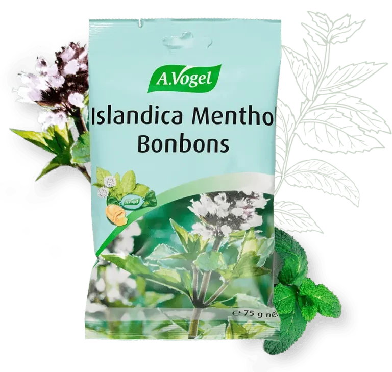 Den islandske mos er i realiteten en lav-art, det vil sige en symbiose af svamp og alge. Islandsk mos har gennem generationer været højt skattet blandt den islandske befolkning som har anvendt den bredt til utallige formål. Den håndplukkes og indsamles fra vildtvoksende vegetationer i Island, hvorefter dens ekstrakt udvindes og bruges i blandt andet A. Vogels Islandica Menthol Bonbons. I mentolbolsjerne får du altså en bid af den smukke, vilde natur, der kendetegner Island, i kombination med sødmen og den forfriskende smag af mentol.