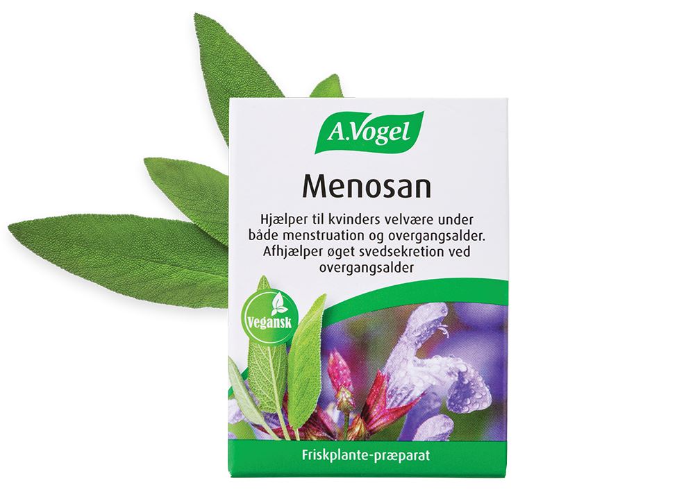 Menosan indeholder udtræk af frisk Salvie, som hjælper ved øget svedtendens i forbindelse med overgangsalder. Med andre ord kan du med fordel bruge den, hvis du oplever hedeture under overgangsalderen. Det er forskelligt fra kvinde til kvinde, hvor længe overgangsalderen varer; men der er heldigvis ikke en øvre grænse for, hvor længe man kan indtage Menosan.