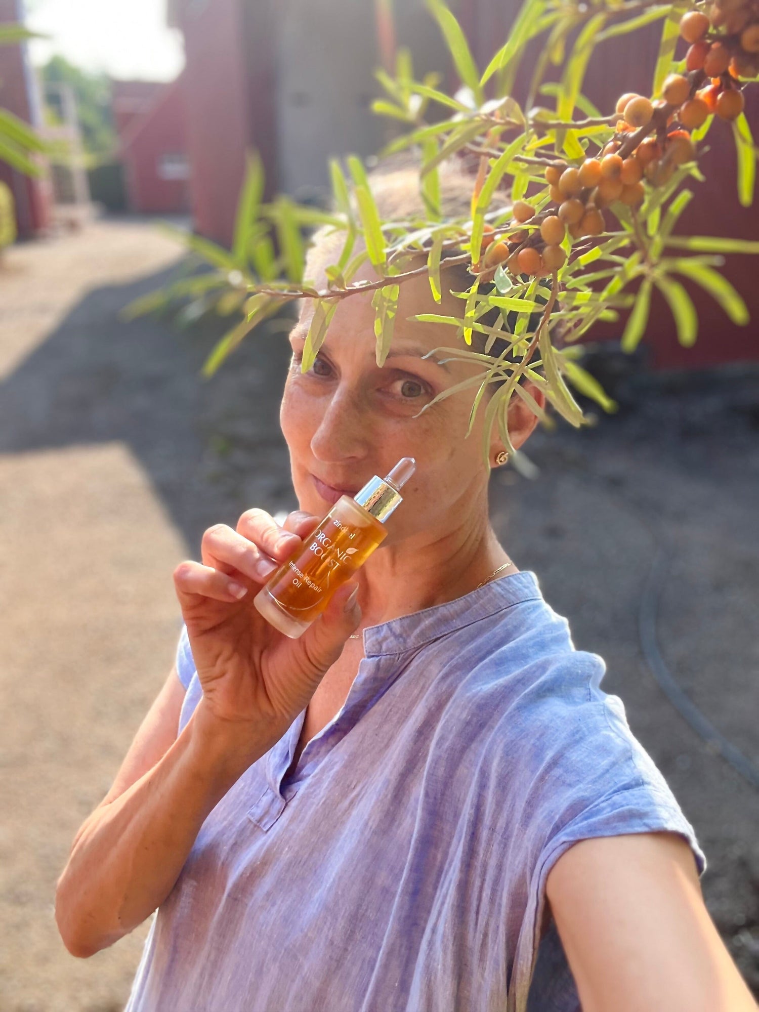 Produktet er bygget op omkring dets hovedolie, økologisk hybenkerneolie.