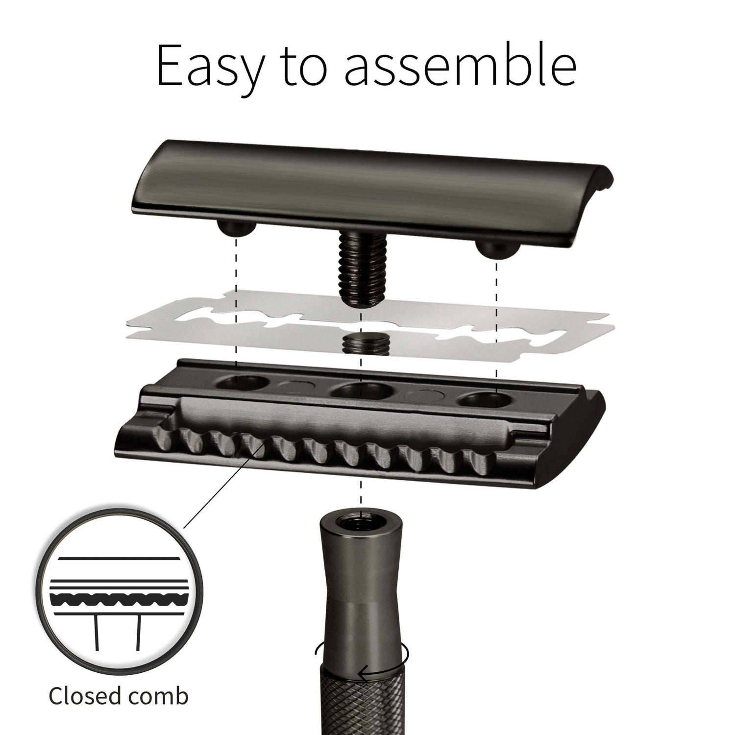Med en barberskraber i metal minimere du dit plastikaffald, det eneste, der skal udskiftes, er barberbladet der er fremstillet i rustfrit stål. Helt i I modsætning til hovedet på en plastikskraber, kan barberbladet på en safety razor nemt sorteres og genanvendes. Det bliver desuden også billigere på den lange bane med en safty razor i metal. Barberbladene er dobbeltsidede, hvilket gør det muligt at bruge begge sider af barberskraberen.