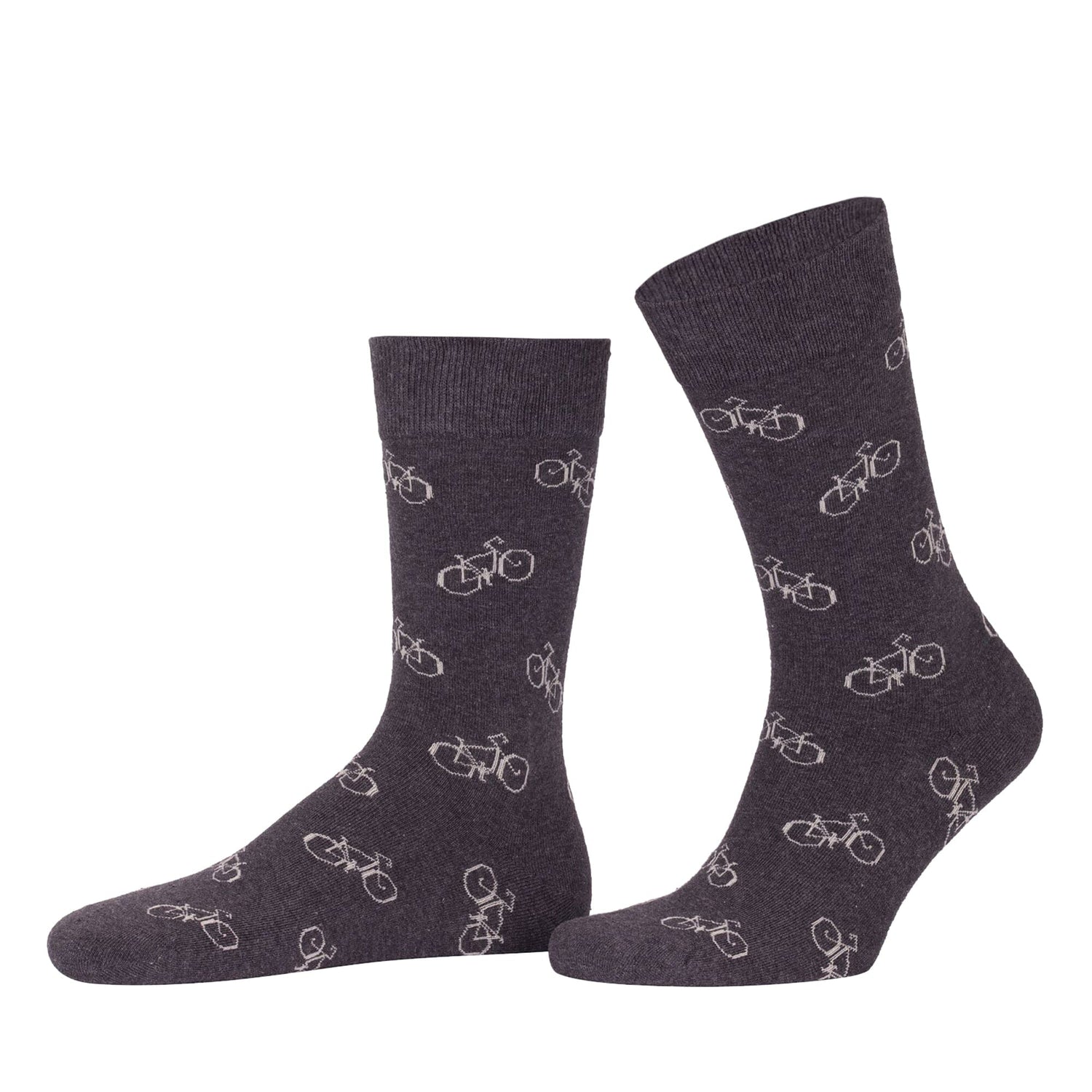 Økologiske Herre Strømper Bomuld Cykelmotiv - Grå Størrelse 41-46