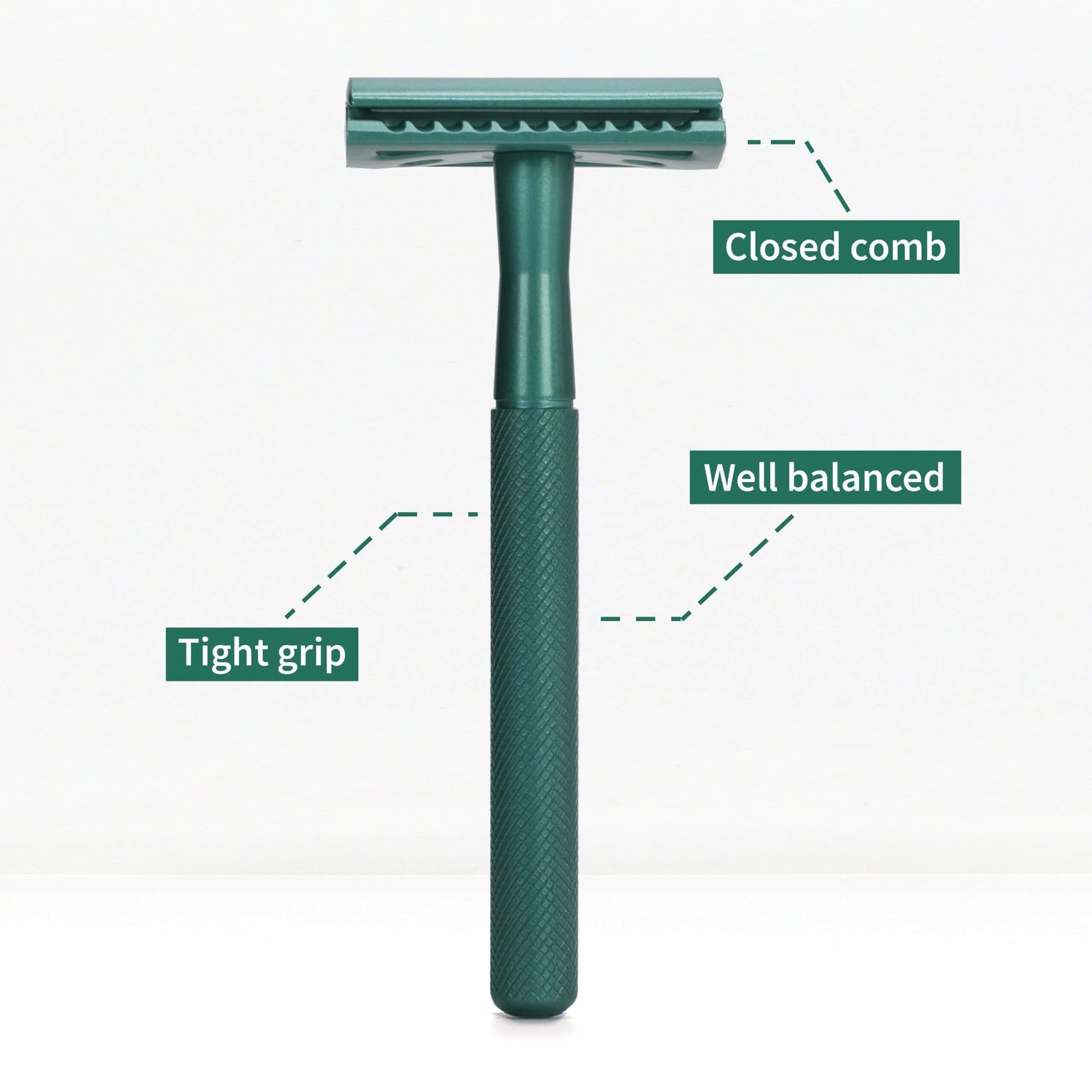 Med en barberskraber i metal minimere du dit plastikaffald, det eneste, der skal udskiftes, er barberbladet der er fremstillet i rustfrit stål. Helt i I modsætning til hovedet på en plastikskraber, kan barberbladet på en safety razor nemt sorteres og genanvendes. Det bliver desuden også billigere på den lange bane med en safty razor i metal. Barberbladene er dobbeltsidede, hvilket gør det muligt at bruge begge sider af barberskraberen.