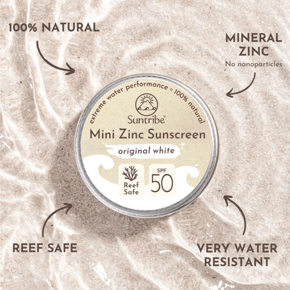 Denne økologiske og mineralske solcreme er fremstillet af 100% naturlige ingredienser, og med et højt økologisk indhold. Suntribe bruger non-nano zinkoxid mineral filter, som giver sikker beskyttelse mod UVA- og UVB-beskyttelse fra første påførings. Solcremen faktor SPF-50 og tyk i konsistensen. den lægger en hvid beskyttende hinde ovenpå huden.