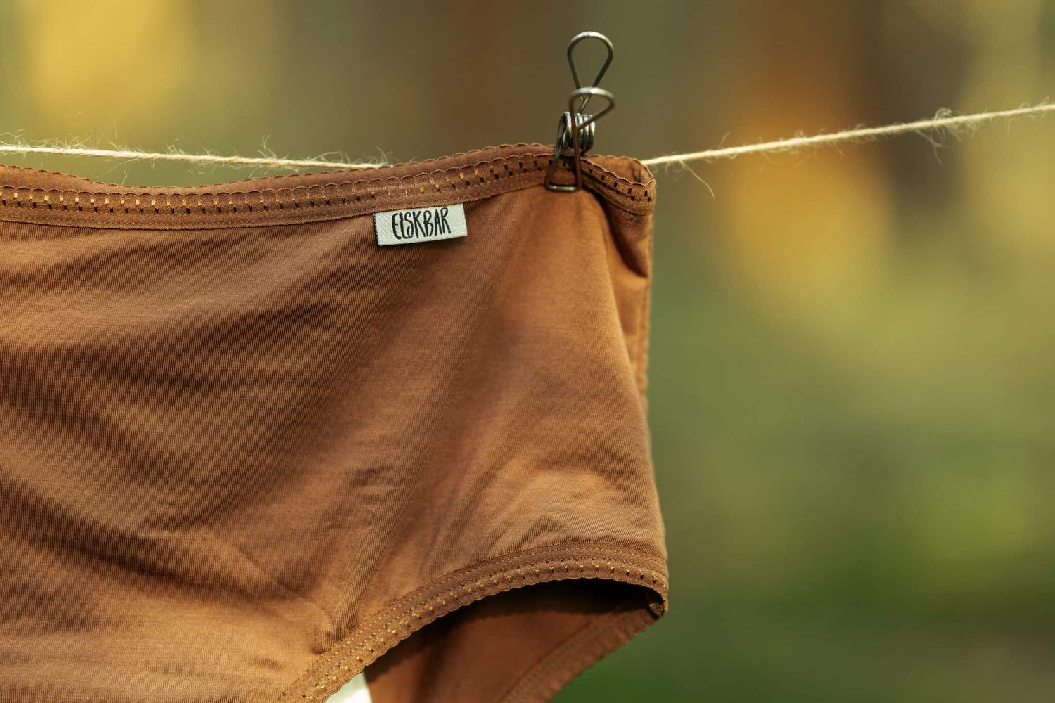 Menstruationstrusserne skal hængetørre for at skåne dem mest muligt. Da trusserne er lavet af 3 lag super sugende bambus, vil tørretiden derfor være lidt lang. Vend dem på vrangen for at de tørrer hurtigere.
