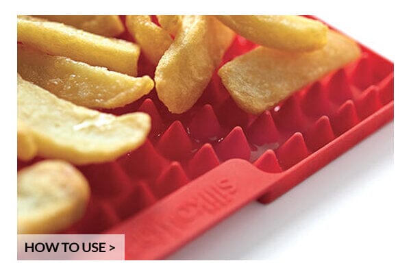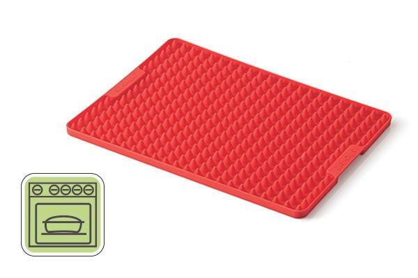 Crispy Mat er en non-stick silikonemåtte, der gør det muligt at bage dine retter på en sprød, velsmagende og let måde. Størrelsen gør den ideel til elektriske ovne med en indvendig plads på over 29 x 22 cm. Den særlige kegleformede struktur gør, at overskydende fedt kan samle sig i fordybningerne under tilberedningen.