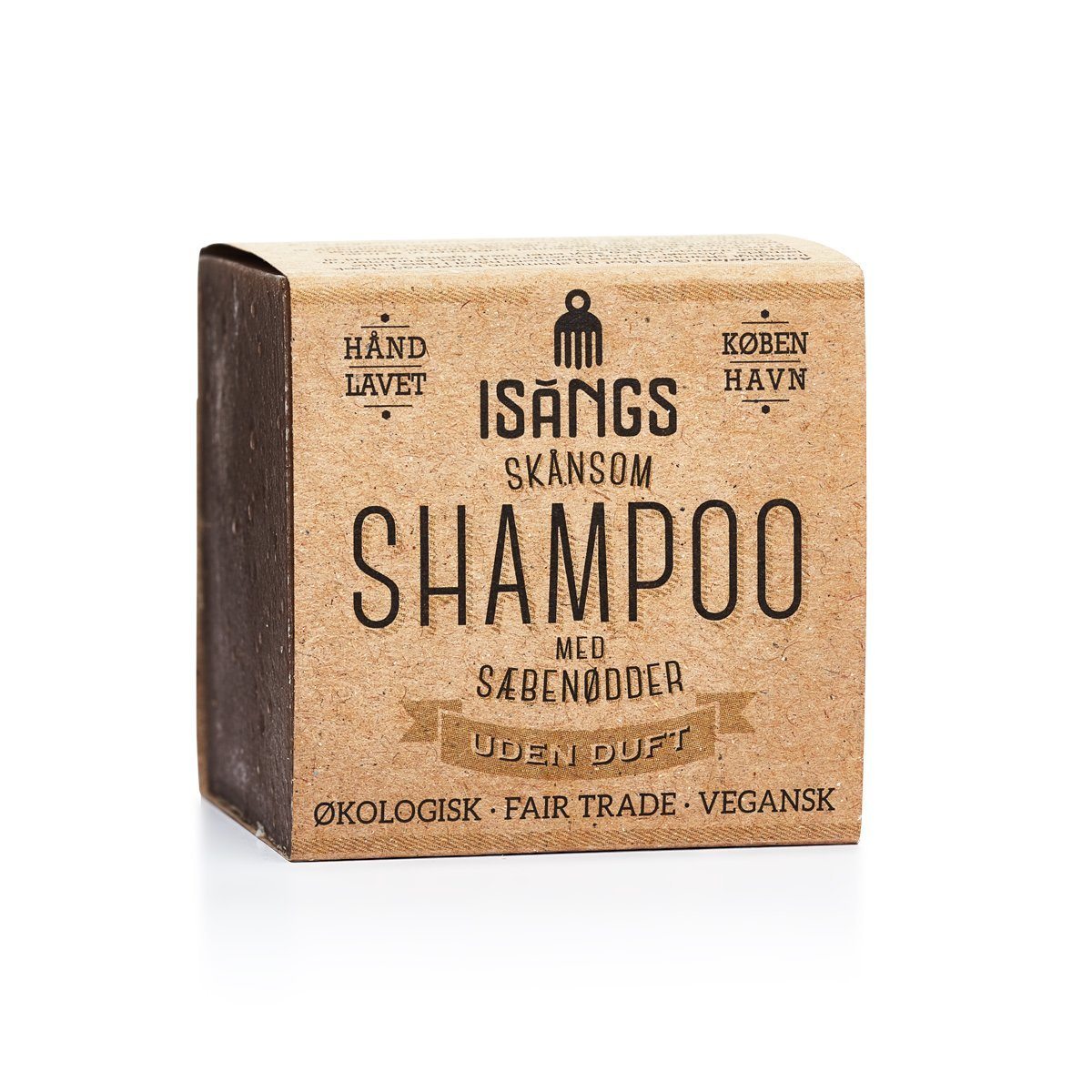 Nænsom shampoo-bar fra Isangs med indhold af sæbenødder som tilfører næring til hår og hovedbund og blidt rengør håret uden at udtørre det.