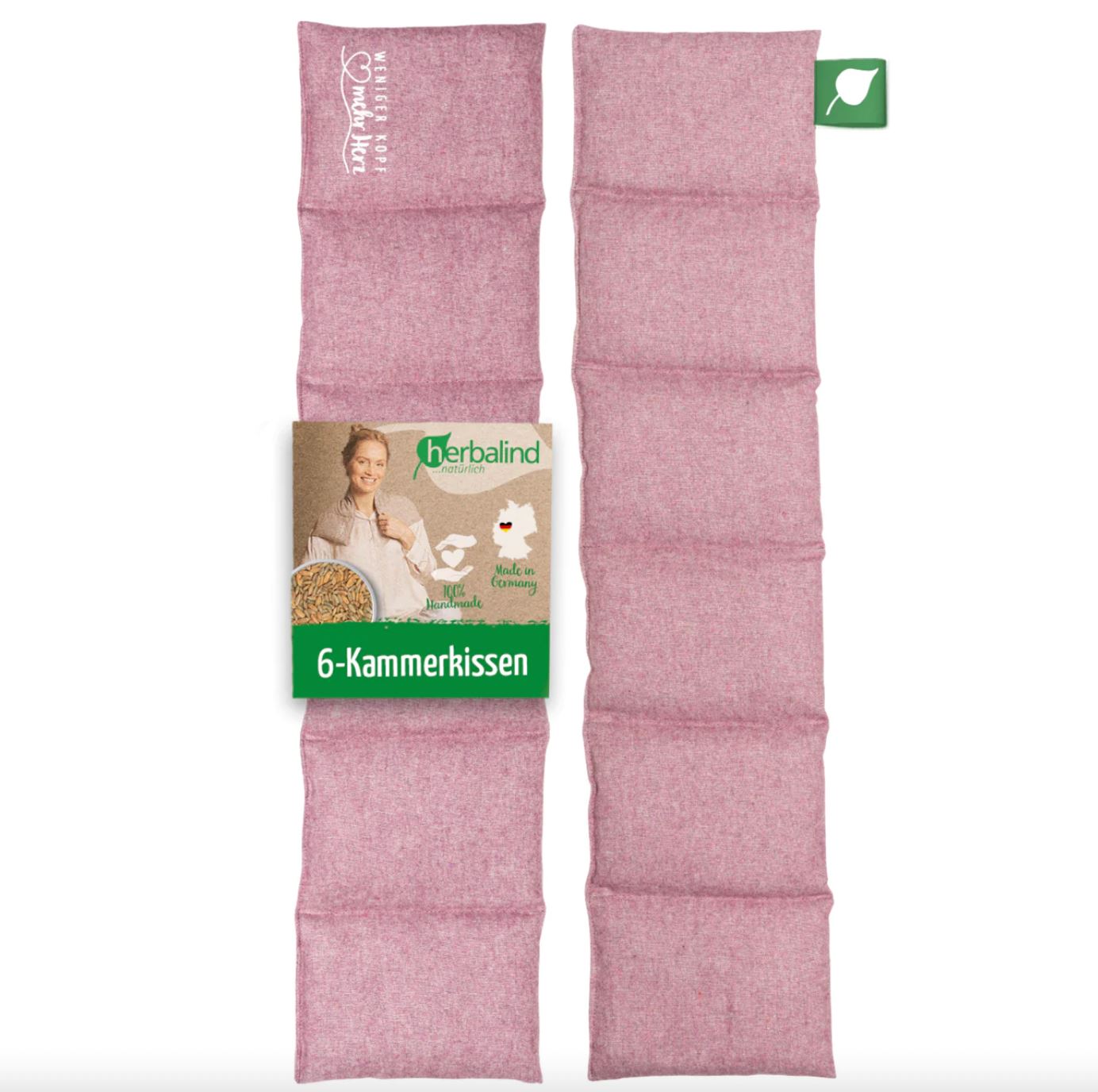 Skøn varmepude der er lavet af naturlige materialer. Denne 6-kammer kornpude er en rigtig allrounder på grund af alle de forskellige anvendelsesmuligheder. Efter 3-4 minutters opvarmning i mikroovnen kan du nyde en naturlig varme, som holder 15-30 minutter. Puden kan også placeres i en fryser og bruges til at køle kroppen. Denne pude indeholder tørrede lavendelblomster, som skaber en beroligende lavendelduft ved opvarmning.