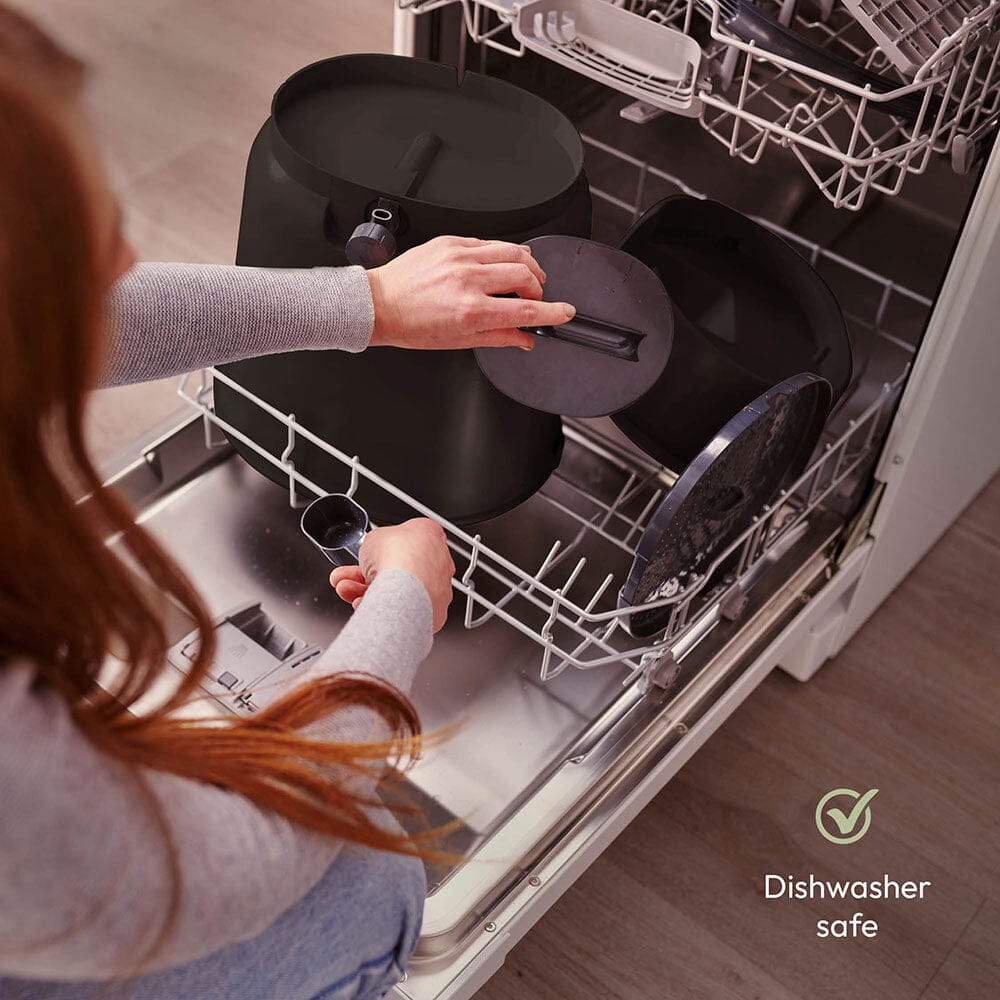 - Brug det medfølgende stempel til at presse madaffaldet sammen i spanden