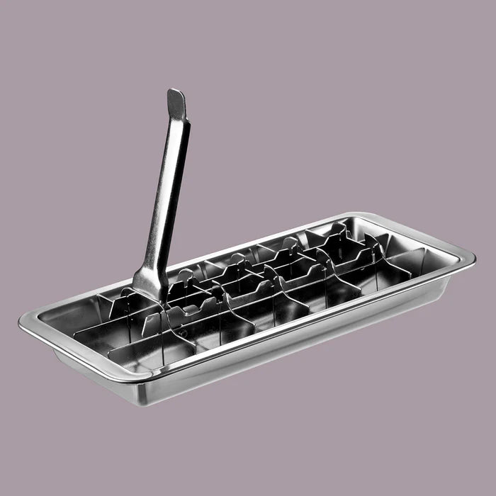 Klassisk isterningbakke fra Pulito der er fremstillet i fødevaregodkendt rustfrit stål med udløser, som løfter isterningerne ud af bakken. Ingen smag af plast og ingen knækkede plastikforme.