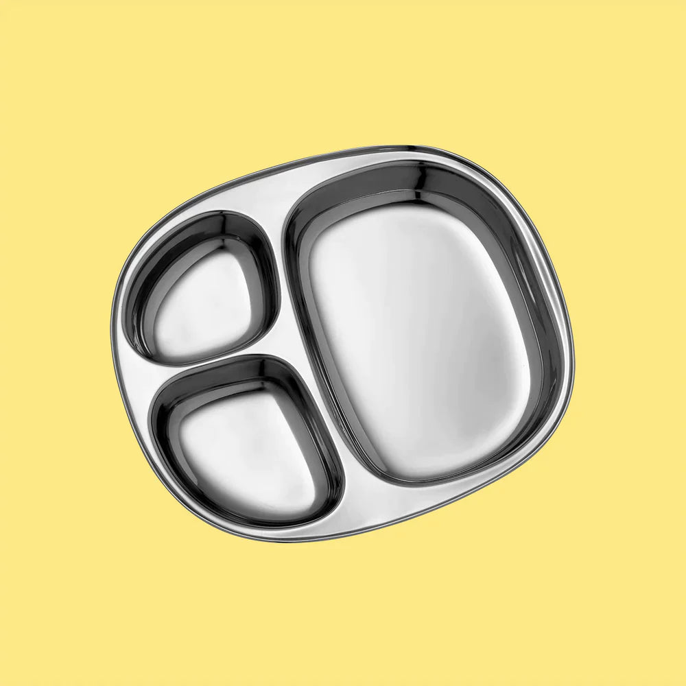 SteelLunchTray er fremstillet i fødevaregodkendt rustfrit stål. Tallerkenen er opdelt i 3 “rum” ligesom den klassiske Y-tallerken.