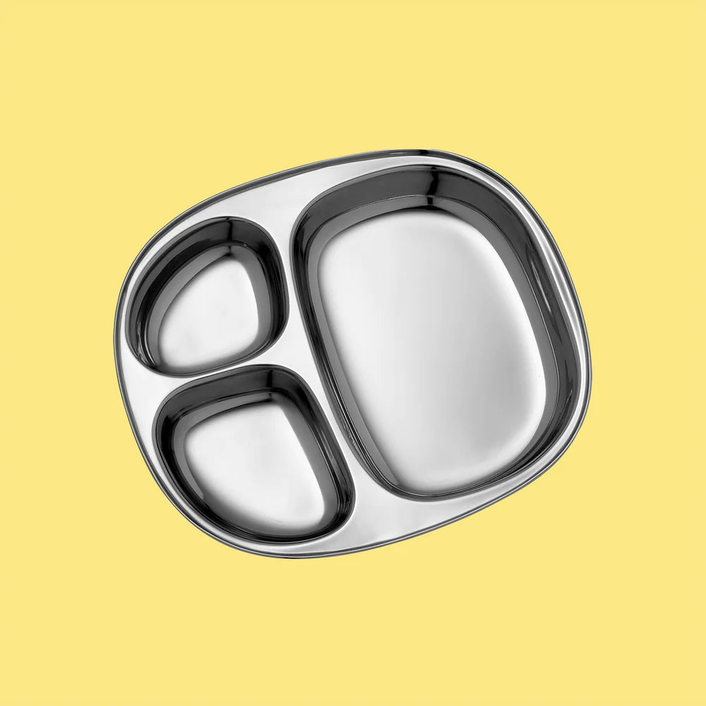 SteelLunchTray er fremstillet i fødevaregodkendt rustfrit stål. Tallerkenen er opdelt i 3 “rum” ligesom den klassiske Y-tallerken.