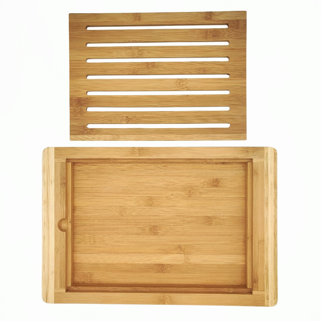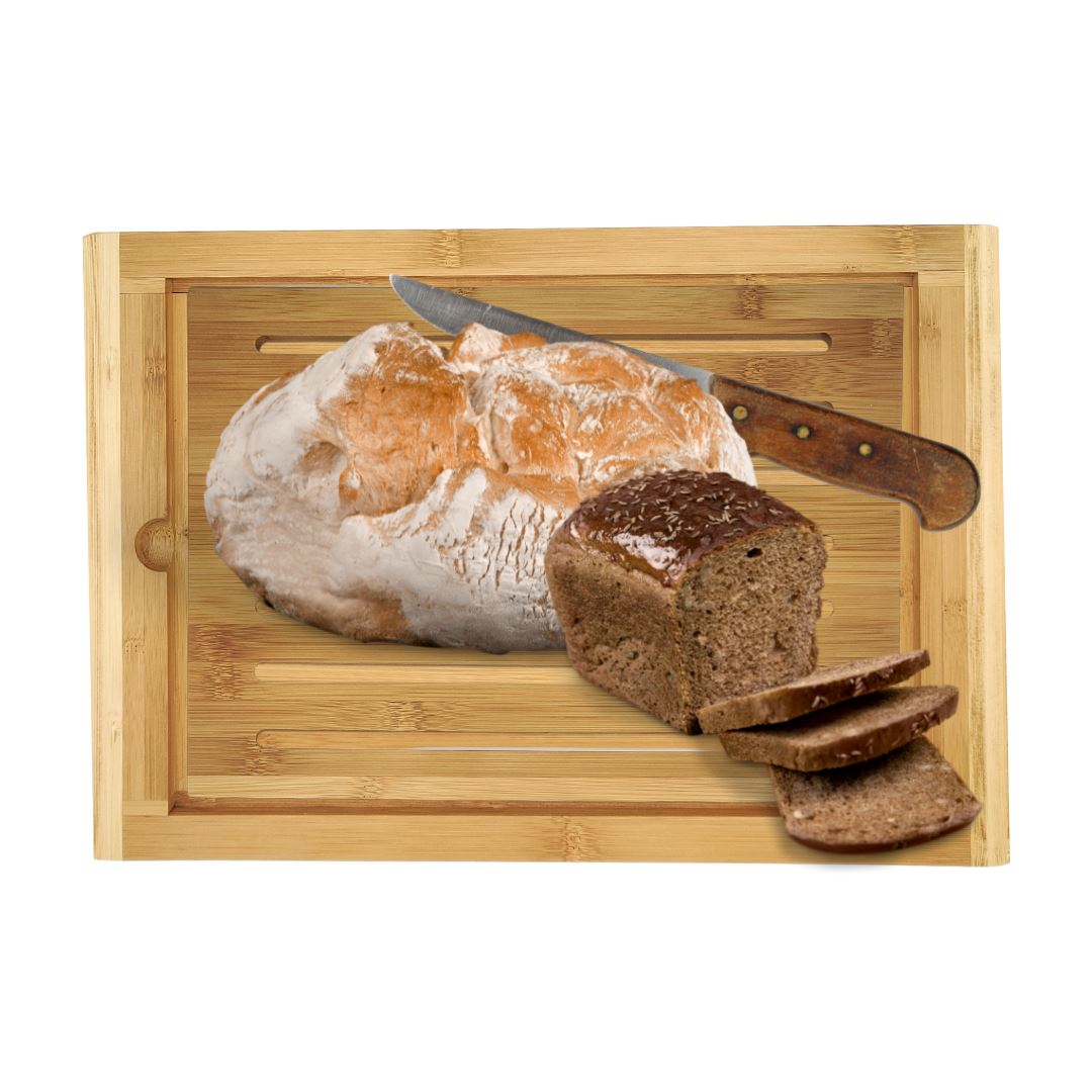 Virkeligt lækkert bambus brød skærebræt i meget smuk forarbejdning, poleret med fineste 500-grain sandpapir. Ved brug af et brød skærebræt havner langt de fleste krummer nede i krummefanget i stedet for på bordet/gulvet. Brødristen kan tages ud, så du nemt tømmer krummerne ud fra krummefanget under risten.