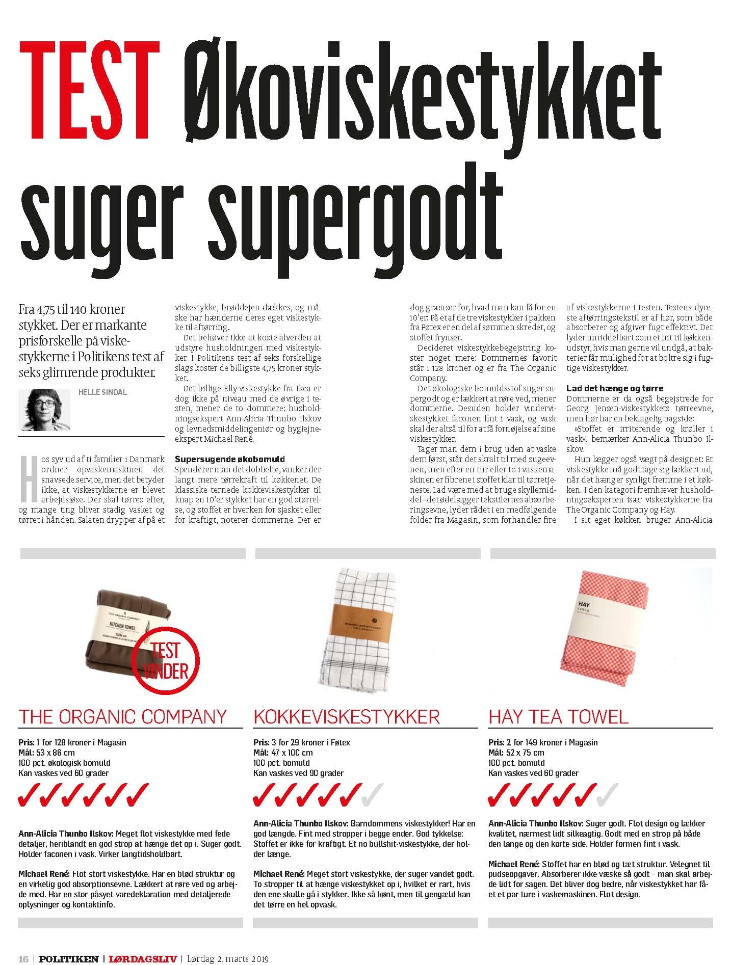 Måske VERDENS BEDSTE VISKESTYKKE finder du lige her. The Organic Company økologiske design viskestykke er nemlig produceret med omhu, godt stort, lang rækkevidde og har en uovertruffen sugeevne. Bedst i test - faktisk vinder af 2 test - bl.a. en stor en i Politiken.