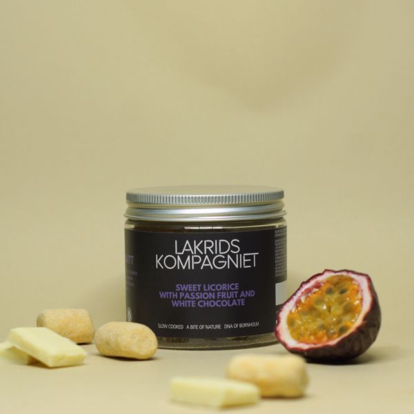 Sød lakrids iklædt mælkechokolade kombineret med den friske og syrlige passionsfrugt. Den perfekte kombination af frisk, syrligt og sødt.