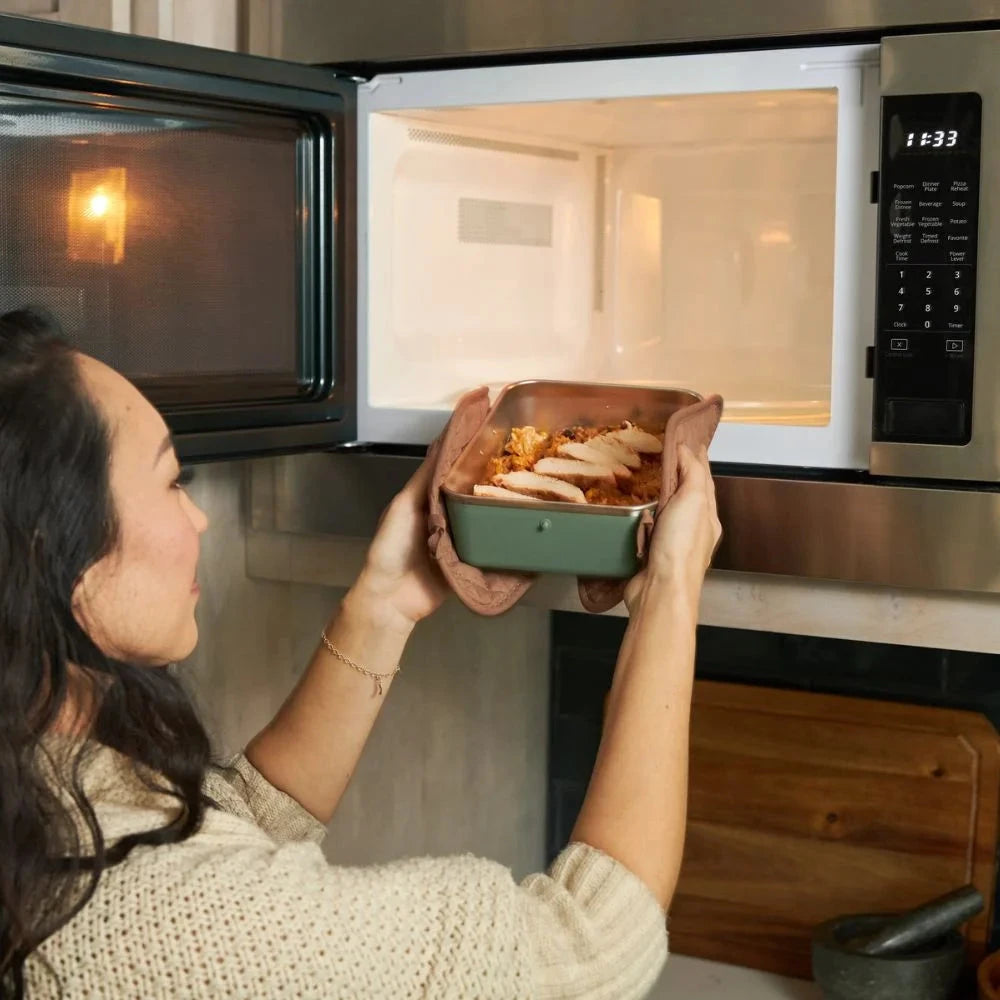 Rise Big Meal Box Set fra Klean Kanteen er et alsidigt og rummeligt madkassesæt med en samlet kapacitet, der gør det nemt at tage hele måltidet med. Den store madbeholder rummer 1626 ml og er ideel til store portioner, madrester eller meal prep. Det tætsluttende låg i fødevaregodkendt silikone er udstyret med både lufttæt forsegling og ekstra snap-låse, som effektivt forhindrer lækage – uanset om maden er varm eller kold.