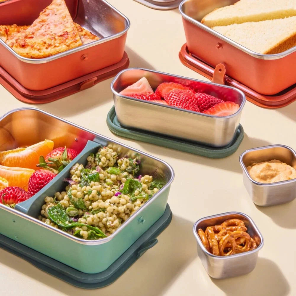 Madkassen leveres med en justerbar rumdeler, så du nemt kan holde forskellige retter adskilt. Sættet indeholder desuden en Lunch Box og en Snack Box fra Klean Kanteen, som begge kan nestes direkte i den store boks. Det gør sættet perfekt til fx salater med dressing, sushi med sojasauce eller en velorganiseret og varieret madpakke.