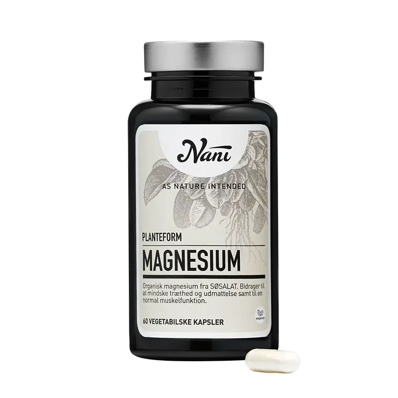 Er du en af dem, der tager magnesium til natten? Så tag din Nani Magnesium til aftensmaden. Den organiske planteform sikrer et mildt tilskud, hvor optagelsen sker langsomt i takt med fordøjelsen. Da vil tilskuddet være optimalt omsat ved sengetid.