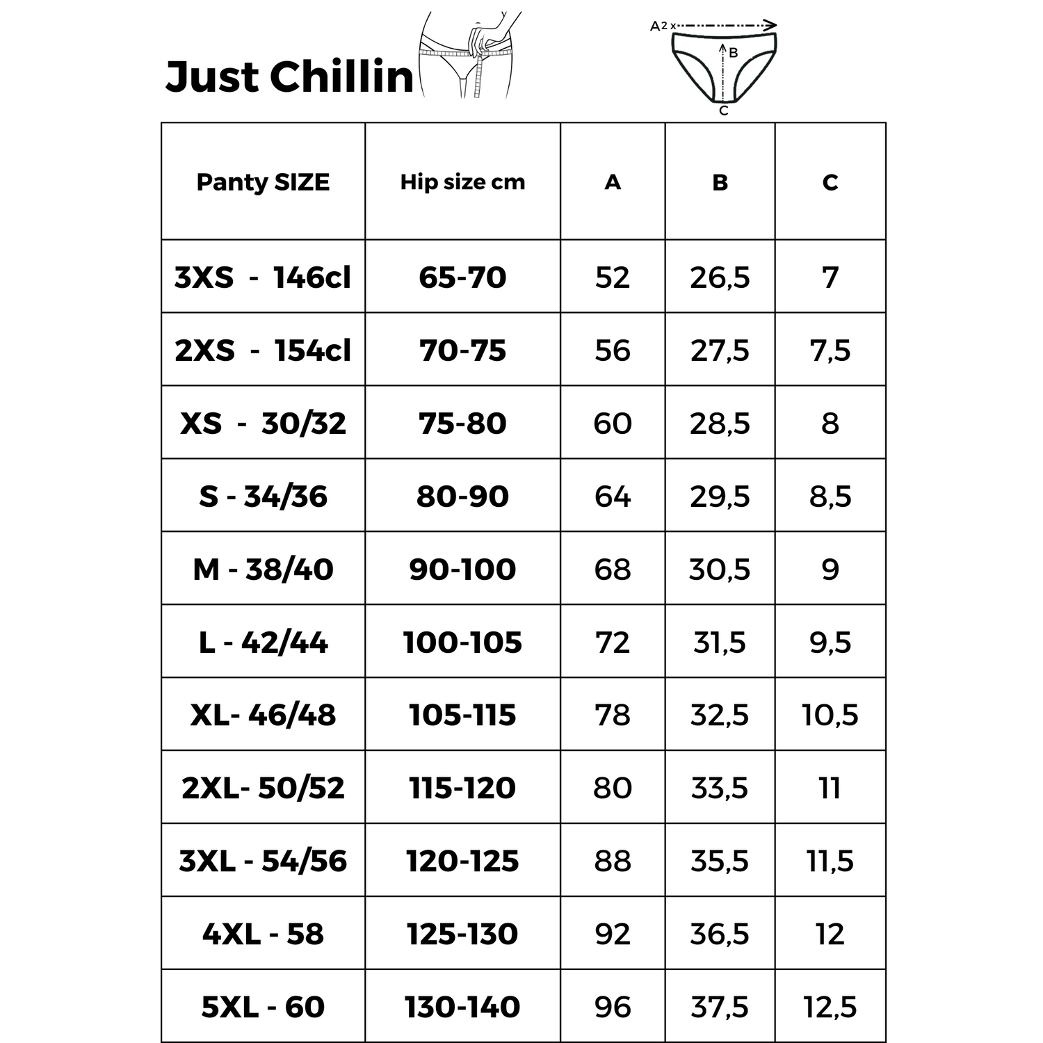 💧 💧 💧 MEDIUM ABSORPTION - Med Just Chillin kan du føle dig sikker med let til moderat flow. Menstruationstrusserne erstatter trusseindlæg, bind eller tamponer og kan bruges i op til 24 timer. Trusseindlægget er tyndt - max 2mm - og dækker hele trussens inderside fra elastik foran til bagpå.