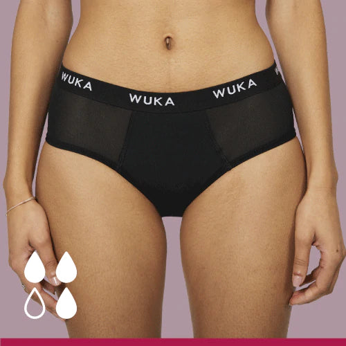 Med et par menstruationstrusserne fra WUKA får du en super absorberende kile med mange lag, der holder på blodet.