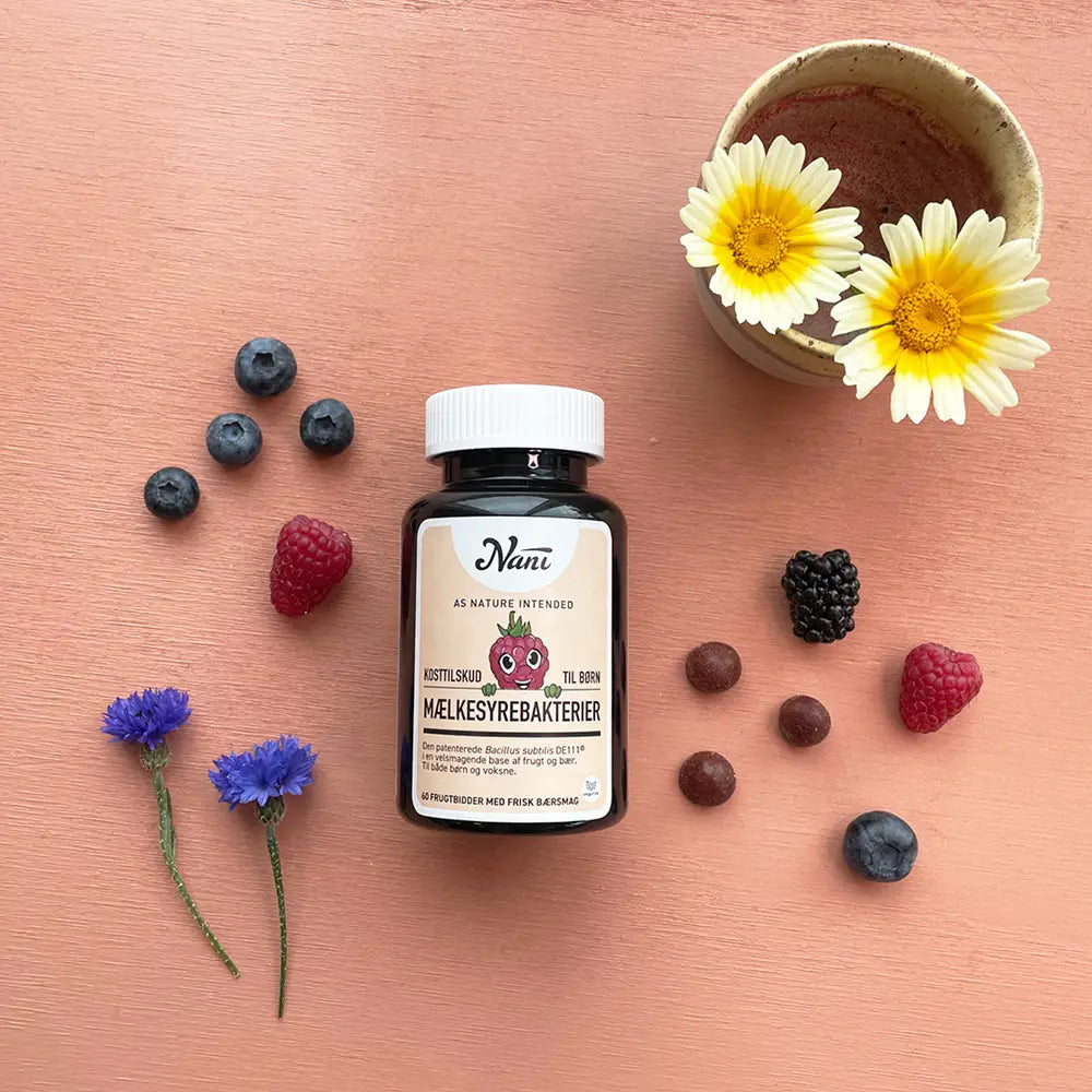 TIP: Børn kan med fordel supplere vores mælkesyrebakterier med vores multivitaminer til børn, som består af lækre bamser fra naturlige kilder.