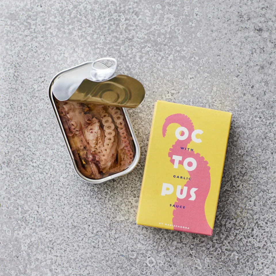 Blæksprutte (Eledone cirrhosa), solsikkeolie, hvidløg, eddike, krydderier, salt.