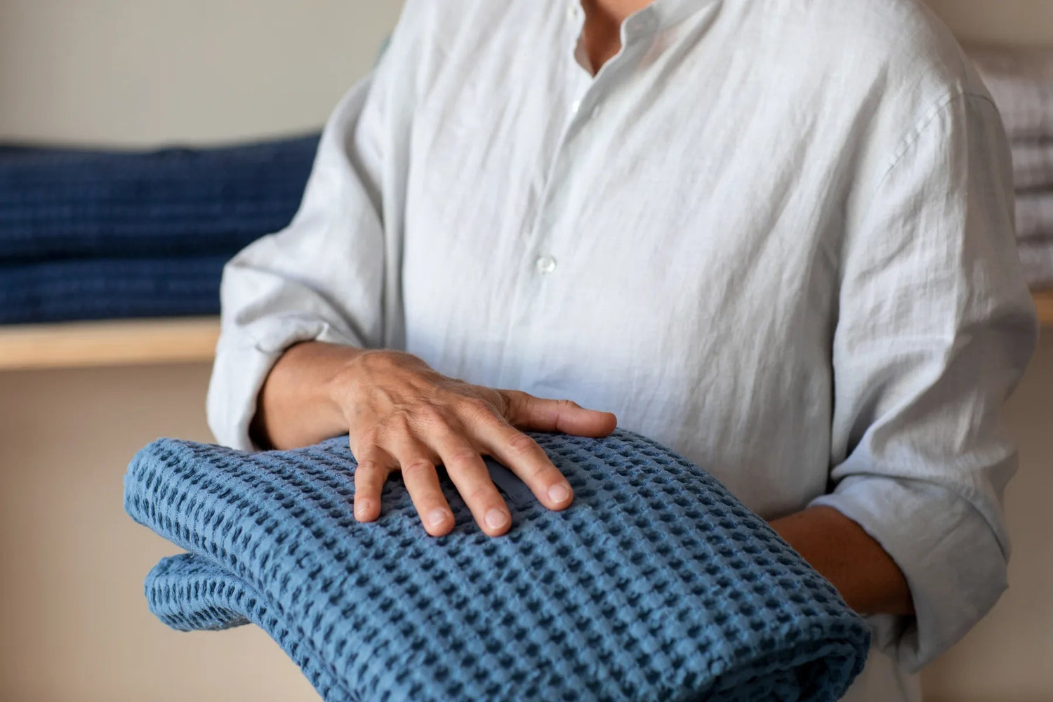 The Organic Company Badehåndklæde Big Waffle - Grey Blue