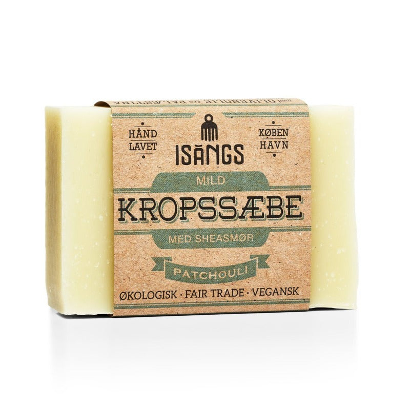 Isangs bud på den klassiske sæbebar, indeholder sheasmør, kokosolie og solsikkeolie og duft at Patchouli.