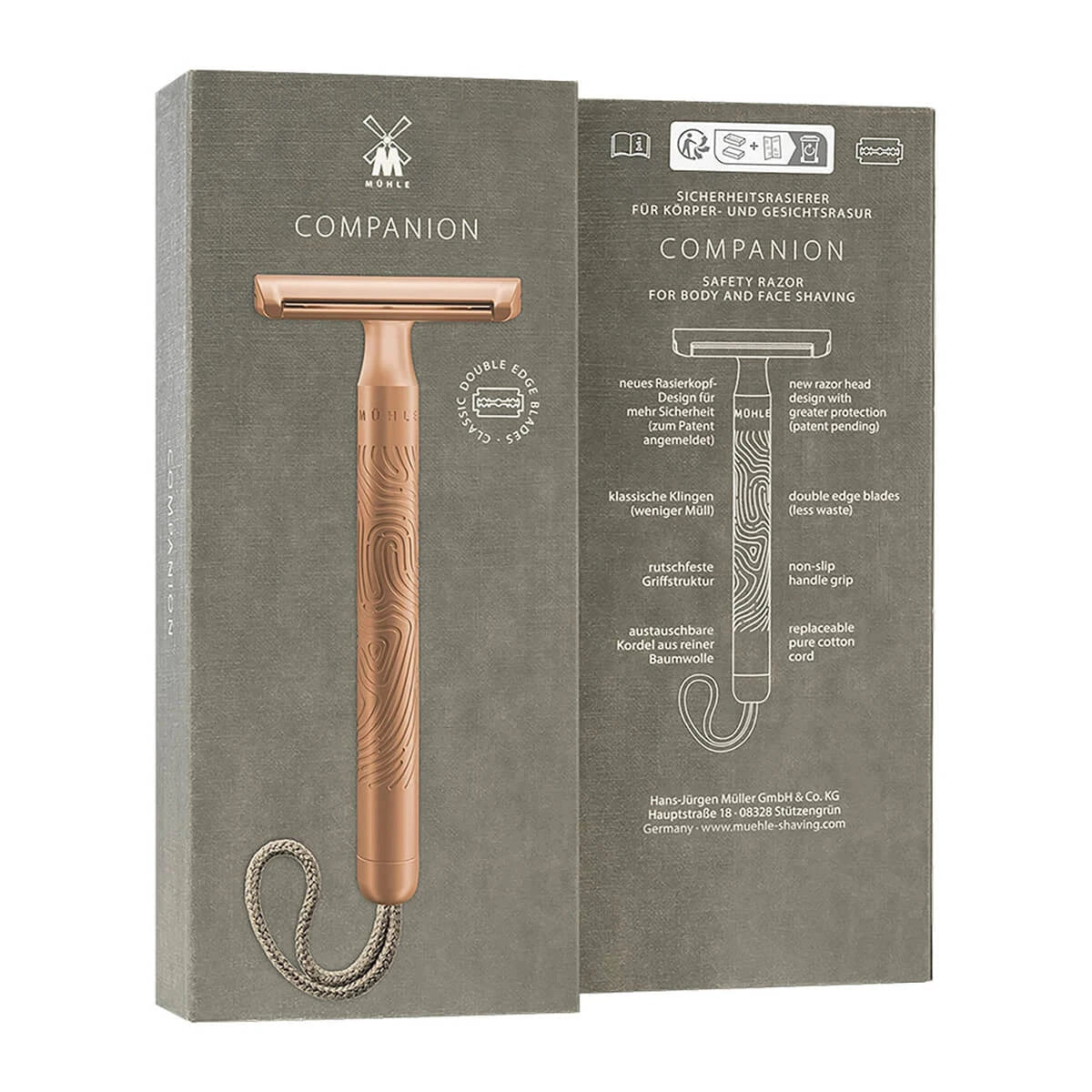 Nu kan du opleve MÜHLEs første unisex DE-skraber, COMPANION, som er særligt udviklet med fokus på brugervenlighed, komfort og sikkerhed – uanset om du barberer ansigt, ben, hoved eller andre områder på kroppen.