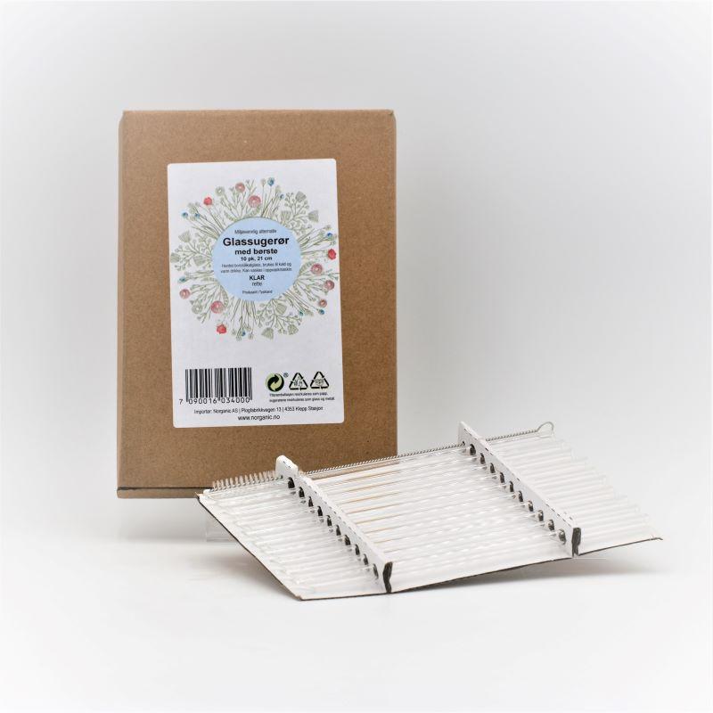 Norganic - Glas Sugerør - lige - 6mm/21cm - Klar - 10 stk +børste