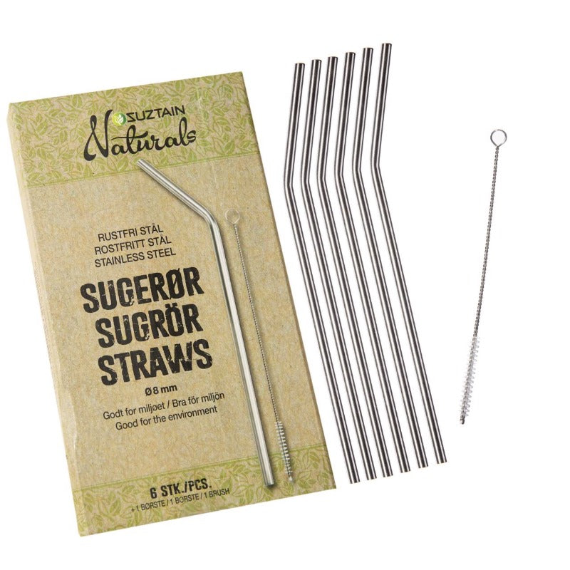 Suztain Smoothie Sugerør af stål 8mm - 6 stk
