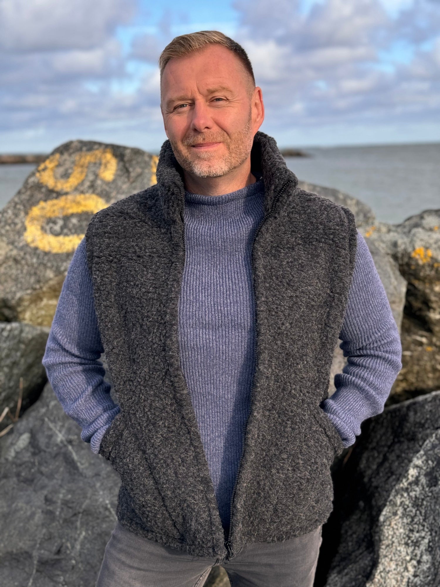 Original WOOLWEAR of Scandinavia® bodywarmer/vest i casual udgave med gennemlyn (2-vejs lyn). i koksgrå.