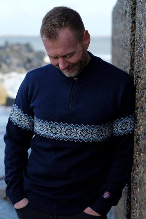 Norsk sweater af 100% fine merinould kamgarn - Navy