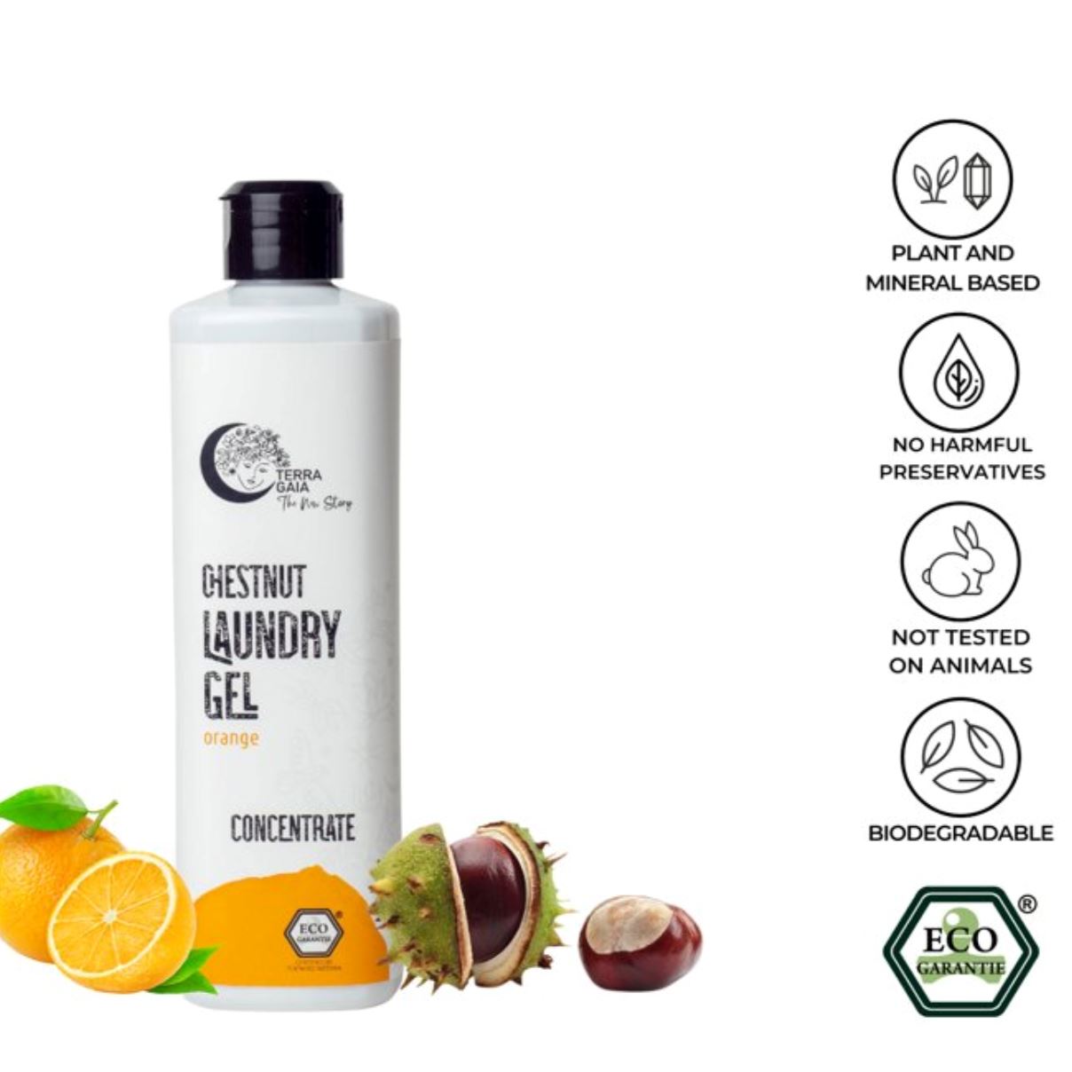 Økologisk Vaskemiddel Gel fra Terra Gaia er en meget koncentreret og alligevel meget skånsom gel, der er ideel til vask af farvet tøj. Vaskemidlet er baseret på økologisk hestekastanjeekstrakt. Det perfekte valg til finvask, børnetøj og stofbleer.