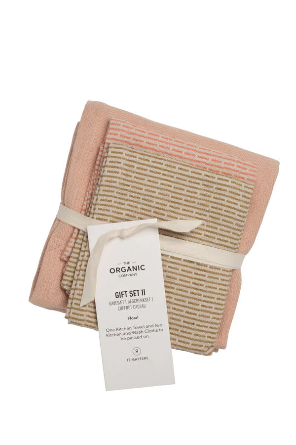 Sampak af 1 viskestykke og 2 karklude. En gave til dig selv eller en du holder af, som kan holde længe og gives ved mange lejligheder. En smuk og betænksom gave.