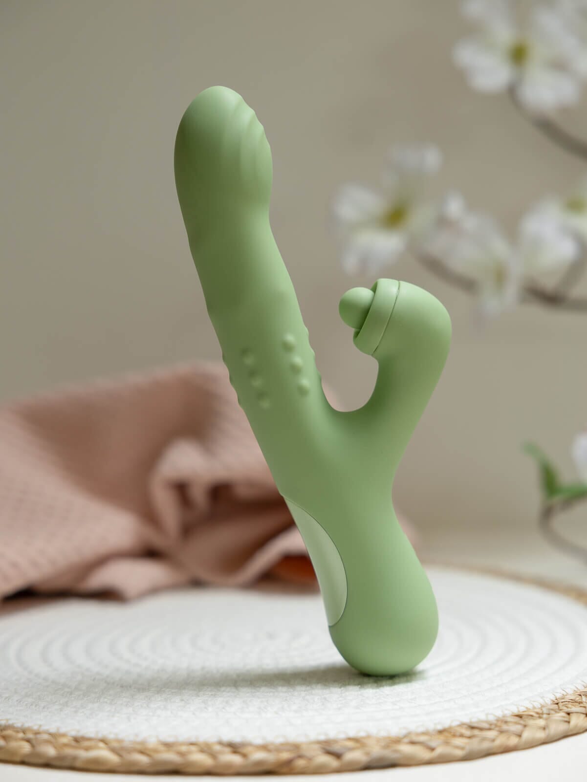 Så hvad er en kaninvibrator overhovedet? En kaninvibrator er et dobbeltvirkende sexlegetøj designet til samtidig at stimulere både klitoris og G-punktet. Traditionelt kendetegnet ved sine ikoniske dobbelte 'ører', der flagrer mod klitoris, parret med et skaft for indre nydelse, tilbyder den en ret omfattende sensuel oplevelse. Dets innovative design sikrer, at begge erogene zoner får samme opmærksomhed, hvilket fører til mere intense og tilfredsstillende orgasmer. Siden starten er kaninvibratoren blevet en absolut fast bestanddel i mange kvinders intime legetøjskister, fejret for sin evne til at levere enestående fornøjelse! Senna er en kaninvibrator FRA FREMTIDEN.