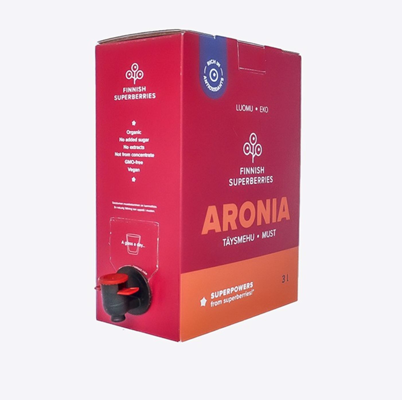 Aroniajuice udvindes af aroniabær, der vokser i Finland. Bærrene har en kraftig, let syrlig smag, som gør juicen særligt velegnet til både ren nydelse og som en ingrediens i smoothies, dressinger eller andre drikke. Den naturlige smag gør, at den kan nydes ufortyndet eller blandes med andre frugtsafter for en mildere smagsoplevelse.