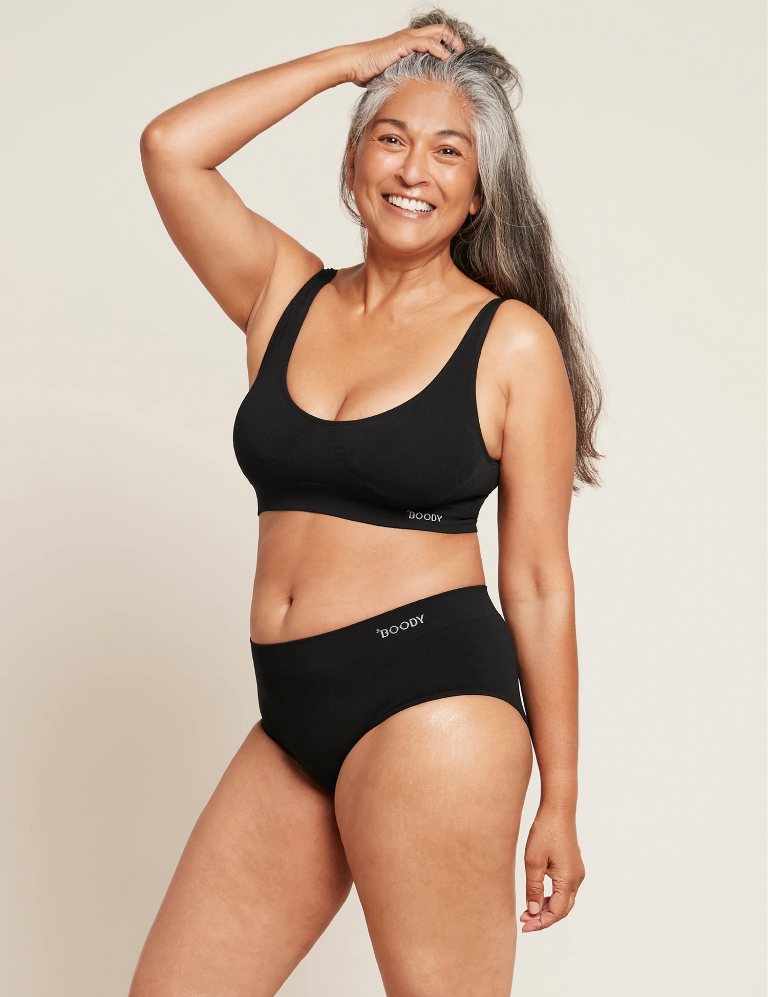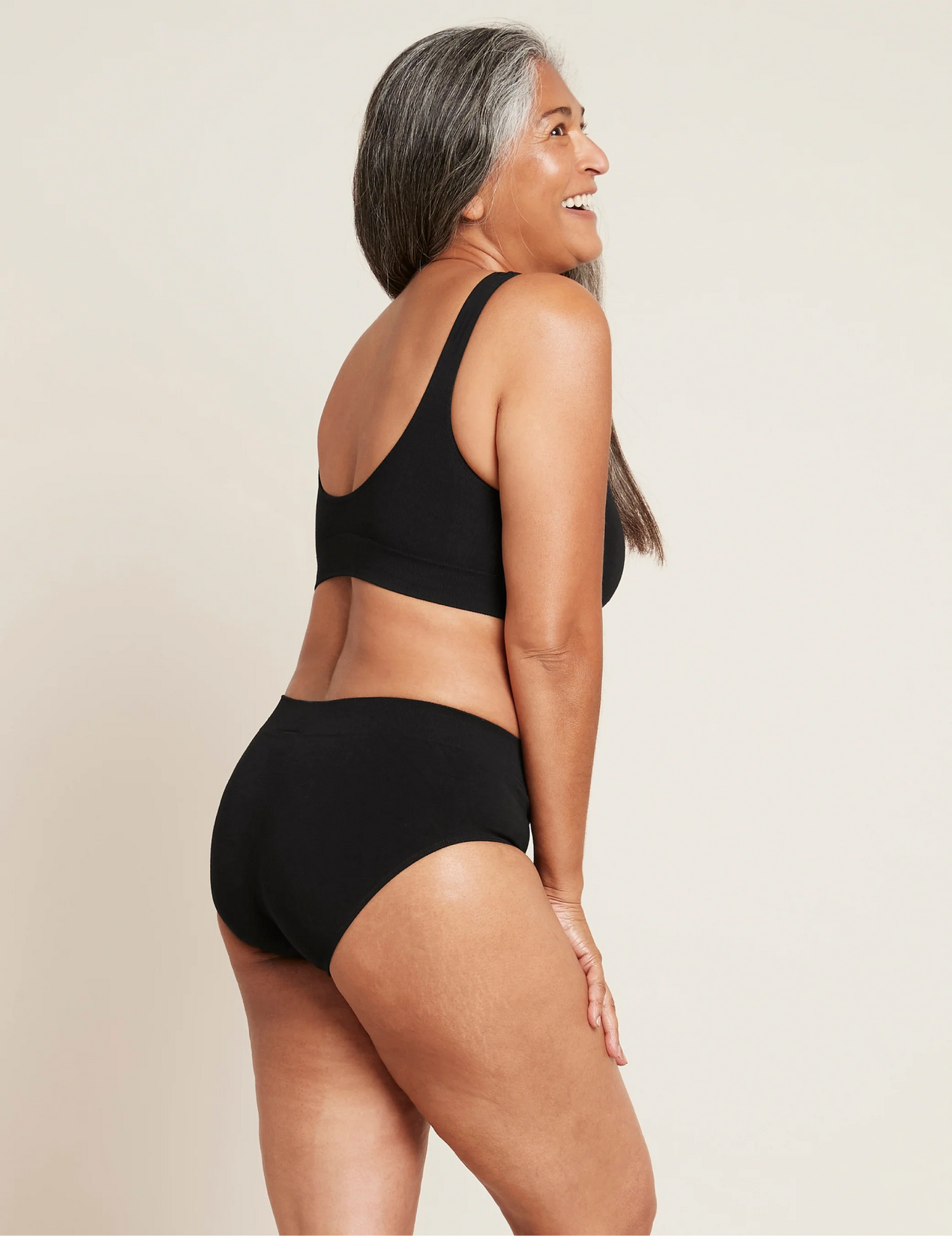 De komfortable Midi Briefs omfavner din hofter alle de rigtige steder. Ikke for højt eller for lavt men perfekt midt i mellem Boodys Classic Bikini og Full Briefs. Den brede elastik i toppen giver støtte uden at stramme og vil naturligt hjælpe til at forme din figur. Midi Brief har en klassisk form som tilbyder moderat til fuld dækning.