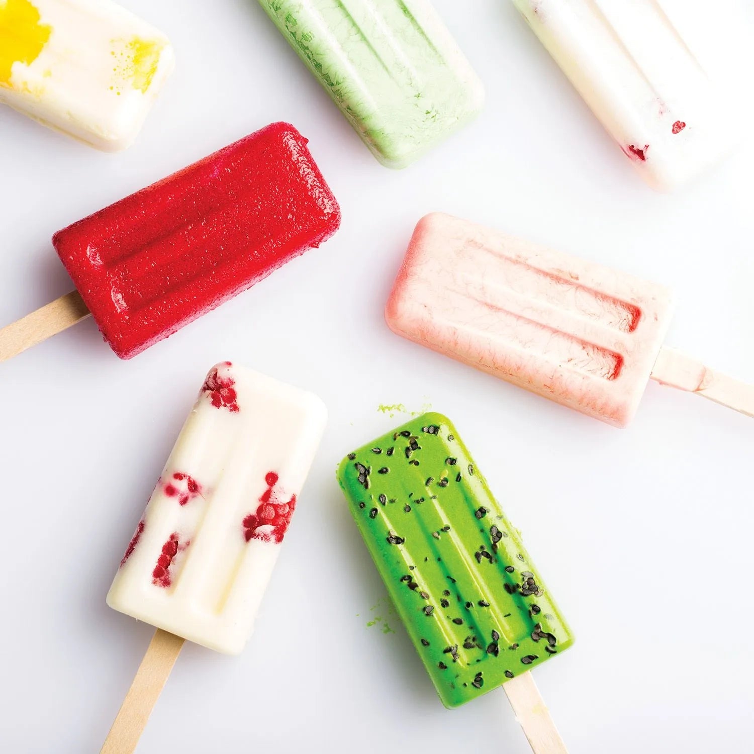 Slip kreativiteten løs i køkkenet og lav dine egne pinde-is til sommeren.  De fleksible forme er lavet af det bedste og reneste silikone, der findes på markedet, nemlig platinsilikone. Sættet består af en silikoneform med 4 rum, 50 pinde og en opskriftsbog med 6 opskrifter.