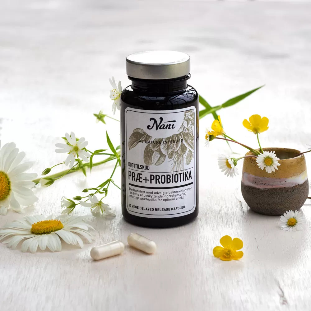 Nanis Præ+Probiotika består af syv forskellige og nøje udvalgte stammer af mælkesyrebakterier, der alle forekommer som en naturlig del af vores tarmsystem. I praktisk kapselform, der blot skal opbevares ved stuetemperatur, og som synkes med et glas vand.