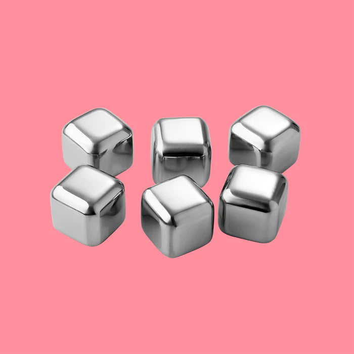 Isterningerne er lavet af fødevaregodkendt rustfrit stål og frysevæsken, som er forseglet i terningerne, består af vand og ethanol (ren alkohol).